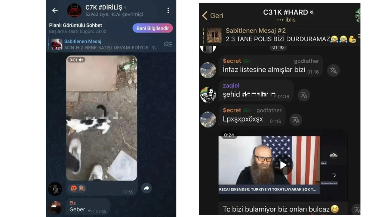 Sosyal medya platformu Telegram’da örgütlenen ve kendilerine “C7K” ile “C31K” adını veren çeteler, akılalmaz suçlara imza atıyor. Genç ve çocuk yaşta olduğu belirlenen kişiler her akşam belirli saatlerde yayın yaparak saldırı planları işkence videoları üzerine konuşuyor. Gruba dahil olan kişiler yaşlarının küçük olması sebebiyle sahte kimlikler ve yabancı telefon numaraları kullanıyor.