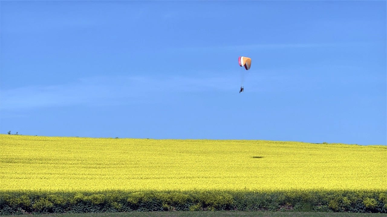 Paraşüt eğitmeni Kadir Aksoy, kentte sarı renge bürünen kanola tarlalarına dikkat çekmek amacıyla, paramotor uçuşu yaptı.