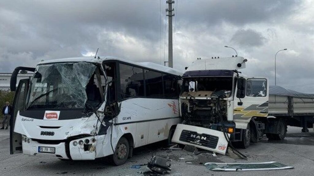 . İşçileri fabrikaya götürmekte olan midibüs ile bir tırın çarpışması sonucu araçta bulunan 12 kişi yaralandı. Yaralılar, olay yerine sevk edilen ambulanslarla en yakın hastanelere kaldırıldı. Sağlık ekipleri, yaralıların durumlarının stabil olduğunu ve tedavilerinin devam ettiğini bildirdi.