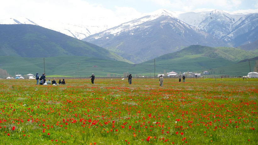 “Yüzlerce insanın akın ettiği bölgede piknik yapanlar, doğanın tadını çıkaranlar ve bol bol fotoğraf çekenler var. Biz de arkadaşlarımızla birlikte bu güzel anları ölümsüzleştiriyoruz. Gerçekten çok etkileyici görüntüler var; ova adeta kıpkırmızı olmuş” ifadelerini kullandı.