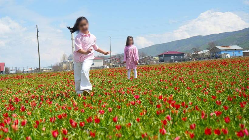 Ak, “Bugün Muş Ovası’na geldik. Muş Lalesi açmış durumda ve ova adeta kırmızıya bürünmüş. Bu eşsiz manzaraya kayıtsız kalamadık, fotoğraf çekmek için biz de buraya geldik.”