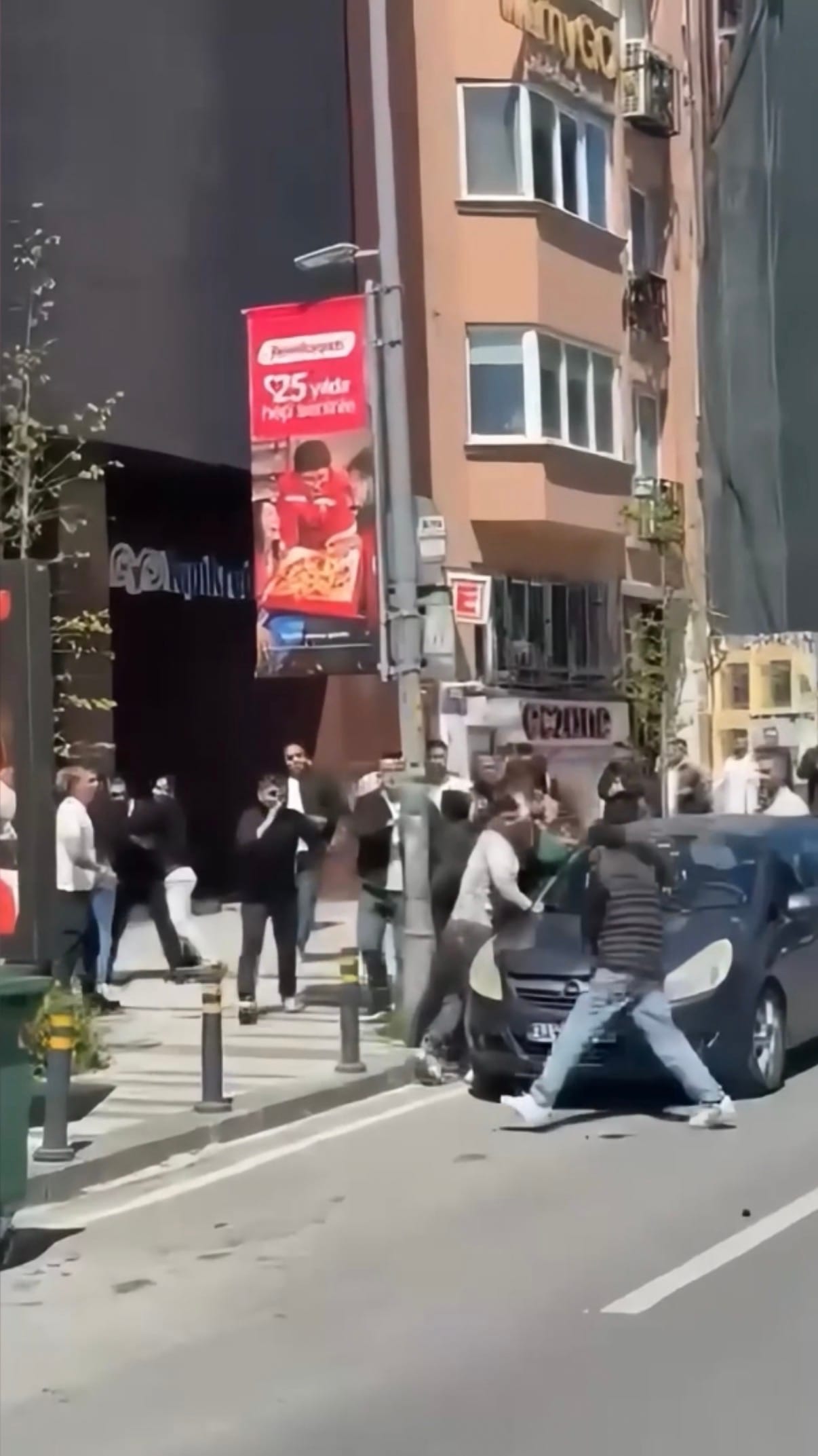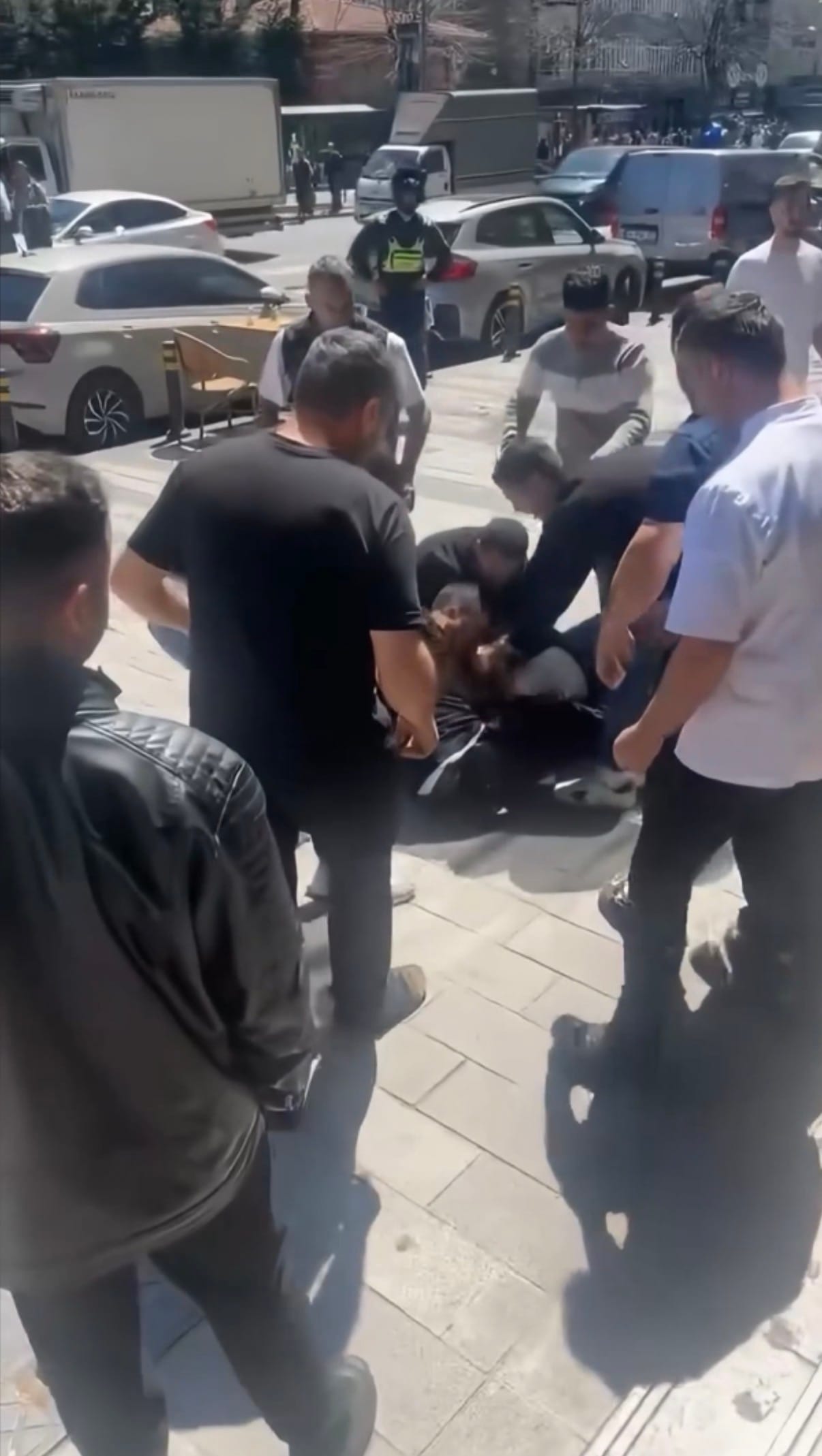 İşportacılar, esnafı yumruk ve tekmelerle darbetti. Çevredekiler kavga eden tarafları “Bir durun”, “Sakin olun” diyerek sakinleştirmeye çalıştı.