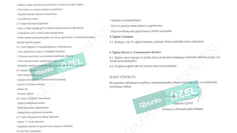 Güvenlik görevlilerinin alacağı eğitimde “kalabalık kontrolü”, “ayaklanma senaryoları” ve “kama–V–çatı” düzenlerinin yer aldığı görülürken söz konusu ‘çevik kuvvet’ eğitiminin detayları şöyle: