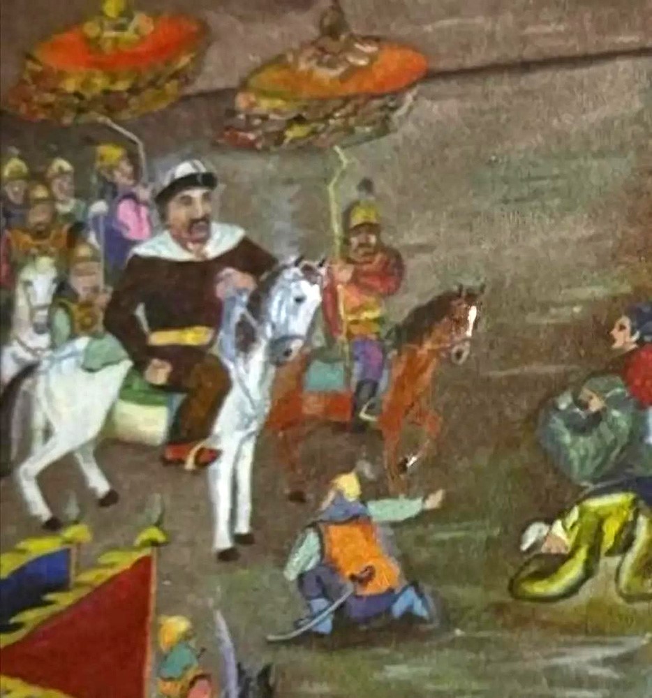 Çizimlerin, Çetbeyjin Kalesi’nin ele geçirilmesi ve sonrasındaki olaylarla ilgili olduğu ifade edilirken, resimlerden birinde Çin imparatorluk kıyafetleri giymiş bir hanın, ak kalpaklı Kırgızlarla çevrili şekilde tasvir edildiği aktarıldı. Araştırmacılar bu sahneyi, Manas’ın Pekin’i aldıktan sonra Çin halkı tarafından hükümdar olarak kabul edilmesi için imparatorluk kıyafetleri giydirildiği bir an olarak yorumluyor. Bu tür motiflerin Manas destanında yer aldığı biliniyor.