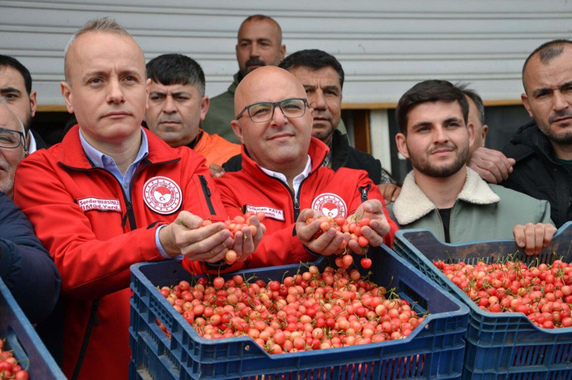 50 kilogram erkenci kiraz, yapılan açık artırmada kilogramı 6 bin TL’den alıcı buldu. Üretici Yusuf Bakar’a ait ilk kirazları tüccar Mesut Altıok satın aldı.