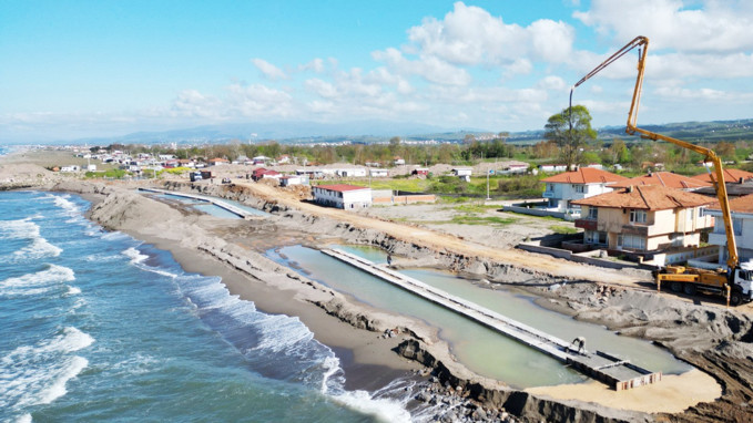 Sakarya’nın Karasu ilçesinde erozyona uğrayan kıyı şeridiyle zarar gören yapıların güvenliği, inşasına başlanan sahil koruma duvarıyla sağlanacak.