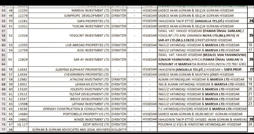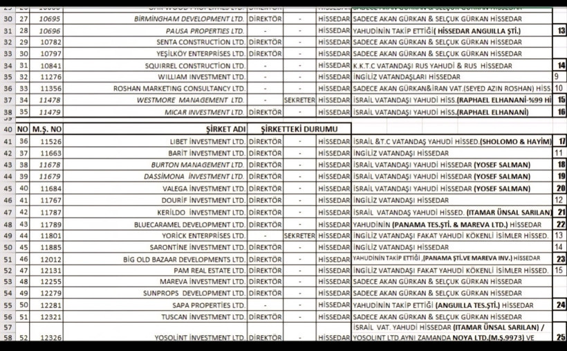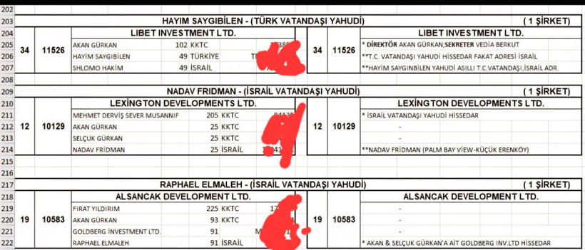İsmail, Kıbrıs’ta İsraillilere ait hala faal olan şirketlerin belgelerini de yayımlandı.