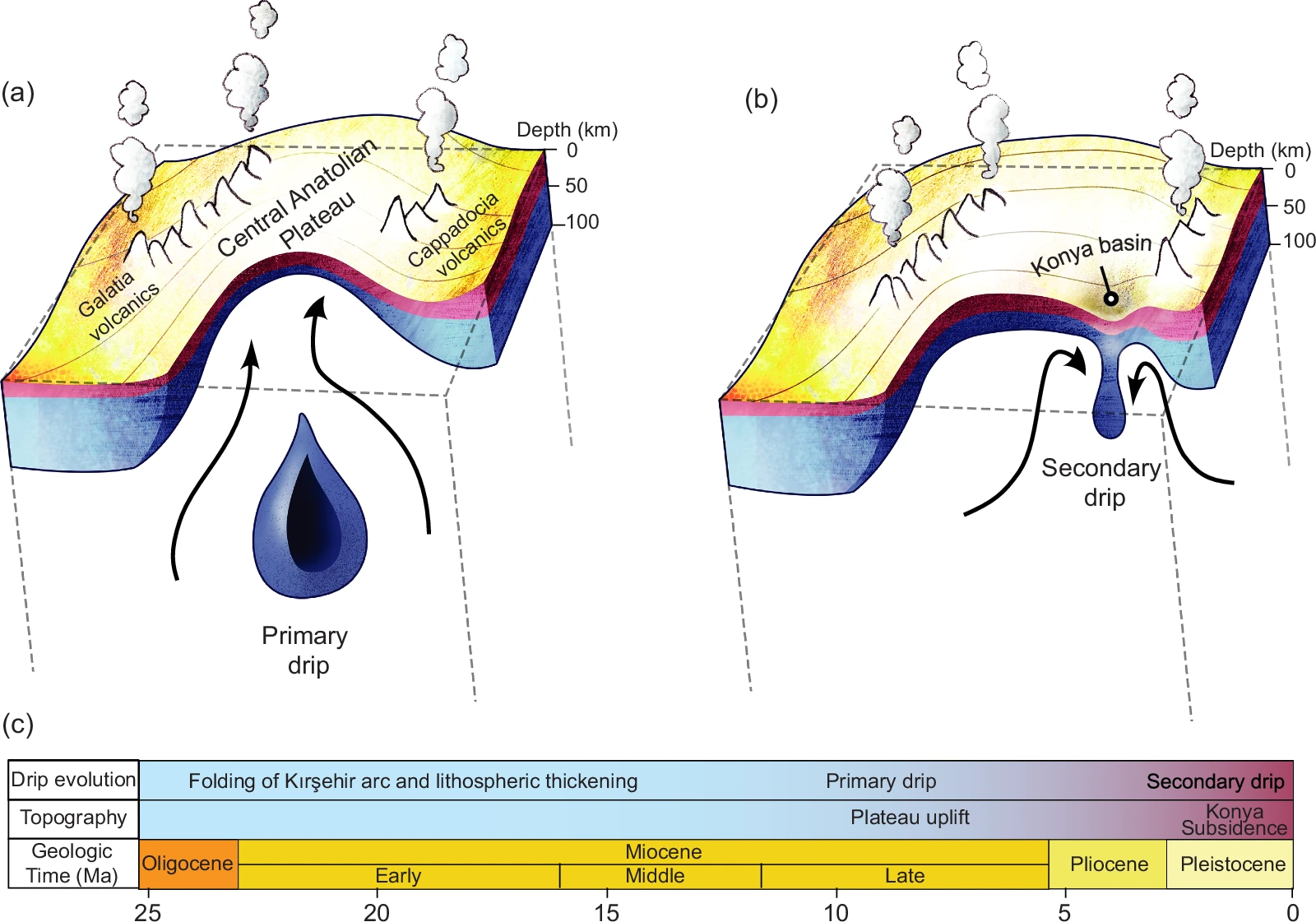 İç Anadolu Platosu milyonlarca yıldır yükseliyor. Ancak bu yükselen platonun tam göbeğinde Konya Havzası tam tersine çöküyor. Nature Communications’ta yayımlanan araştırma, bu tuhaf çelişkinin nedenini ortaya koydu. Julia Andersen liderliğindeki ekibe İstanbul Teknik Üniversitesi’nden Prof. Dr. Oğuz Hakan Göğüş, ve Çanakkale 18 Mart Üniversitesi’nden Dr. Öğr. Üyesi Ebru Şengül Uluocak eşlik etti.