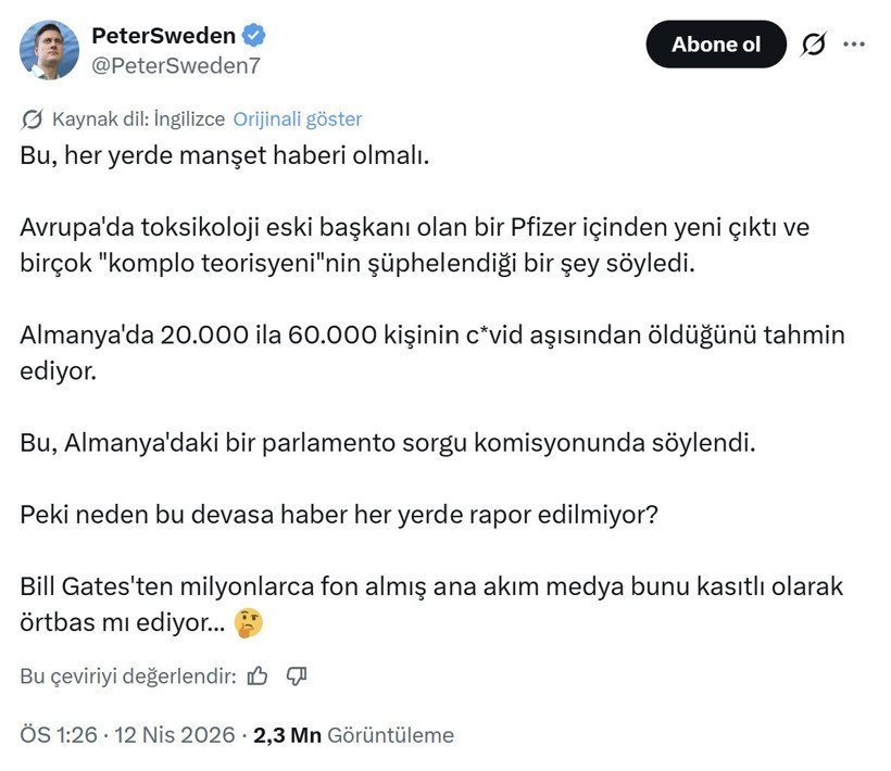 Son olarak sosyal medyada paylaşılan bir iddia, bu tartışmaları yeniden alevlendirdi. İsveçli gazeteci Peter Sweden, Avrupa’da toksikoloji alanında görev yapmış eski bir uzmanın, Almanya’da Kovid-19 aşılarıyla bağlantılı ölümler hakkında dikkat çekici açıklamalarda bulunduğunu öne sürdü.