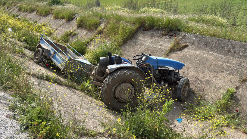 Savrulan traktör, yol kenarındaki kanala düştü. Çevredekilerin ihbarı üzerine bölgeye sağlık, itfaiye ve jandarma ekipleri sevk edildi.