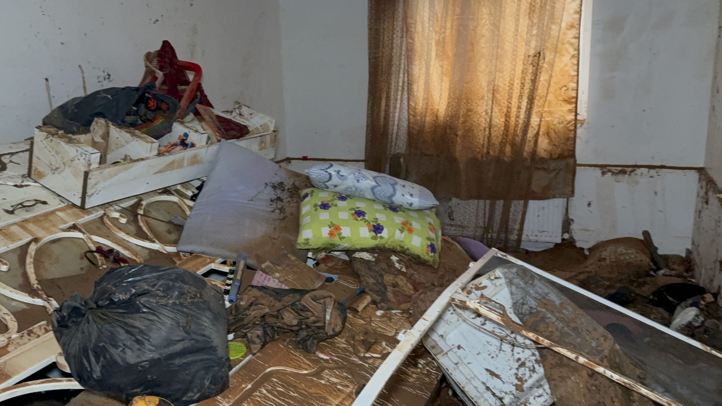 Zarar gören bölgelerde temizlik çalışması başlatılırken, suların tahliye edilmesinin ardından evlerine giren aileler, tüm eşyalarının kullanılamaz hale geldiğini gördü.