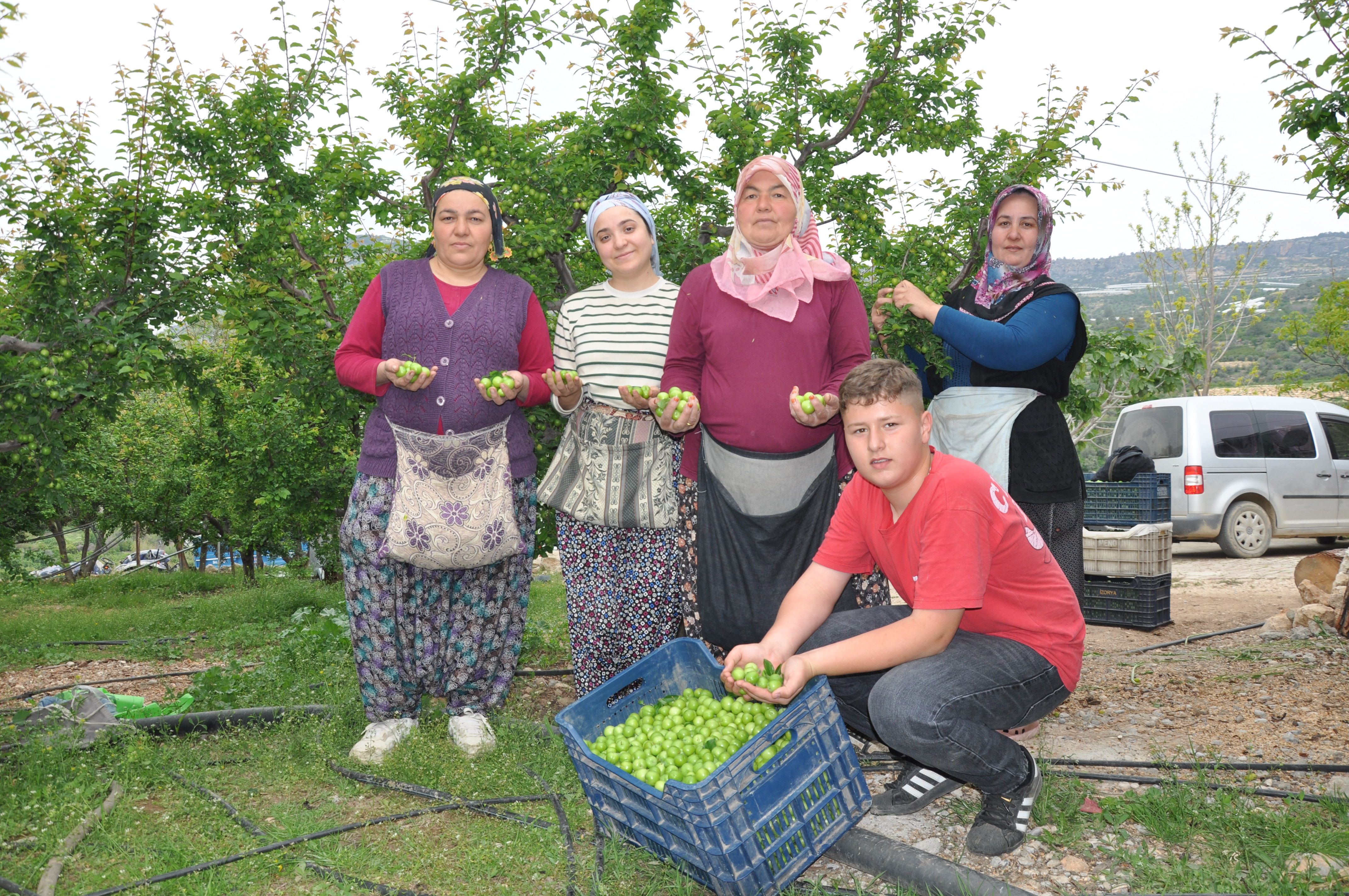 Çiftçilerin mart ayında seralardaki eriklerini topladığı ilçede hasat mesaisi meyvelerin olgunlaştığı bahçelere taşındı.