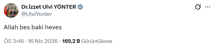Kişisel sosyal medya hesabından manidar bir paylaşım yapan Yönter, “Allah bes baki heves” ifadelerini kullandı.
