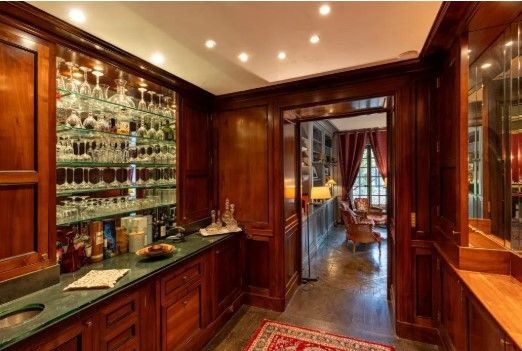 Geniş bir kütüphane, oyun odası, şık bir bar ve devasa bir park alanına bakan mutfak.