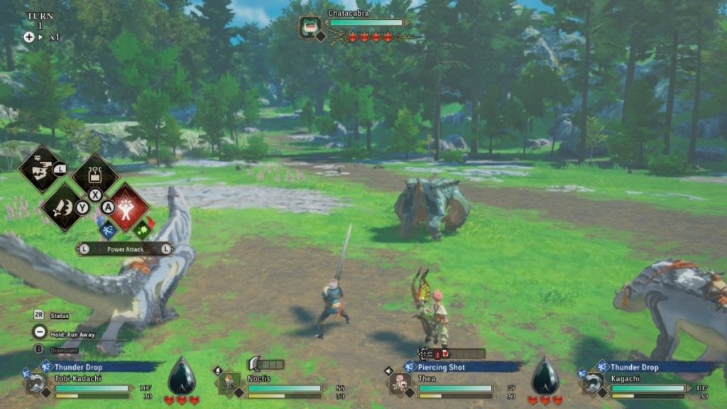 Sıradan bildiğimiz geleneksel savaş sistemleri yerine Monster Hunter’daki “canavarı analiz et” kısmına sadık kalıp çeşitli varyasyonlar eklemişler. Öncelikle sadece kendi karakterimizi ve canavarını kontrol edebildiğimizi söyleyeyim. Tüm partinin kontrolü bizde değil ve bu aslında çok da kötü değil. Temelde 3 ana saldırıyı 3 farklı metotta yapabiliyoruz. “Ağır”, “Teknik” ve “Hızlı” adındaki bu metotları canavarın saldıracağımız bölgesine ve agresifliğine göre ayarlarken aynı zamanda kılıç, ok veya ağır silah arasından da doğru olanla vurmamız gerek.