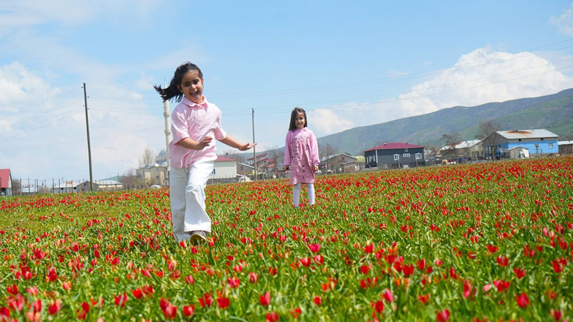 Ortalama 3 hafta canlı kalabilen endemik tür, bahar aylarında Muş Ovası’nın en dikkat çeken doğal zenginlikleri arasında yer alıyor. Kırmızı tonlarıyla ovayı süsleyen laleler, her yıl olduğu gibi bu yıl da görsel şölen sundu.