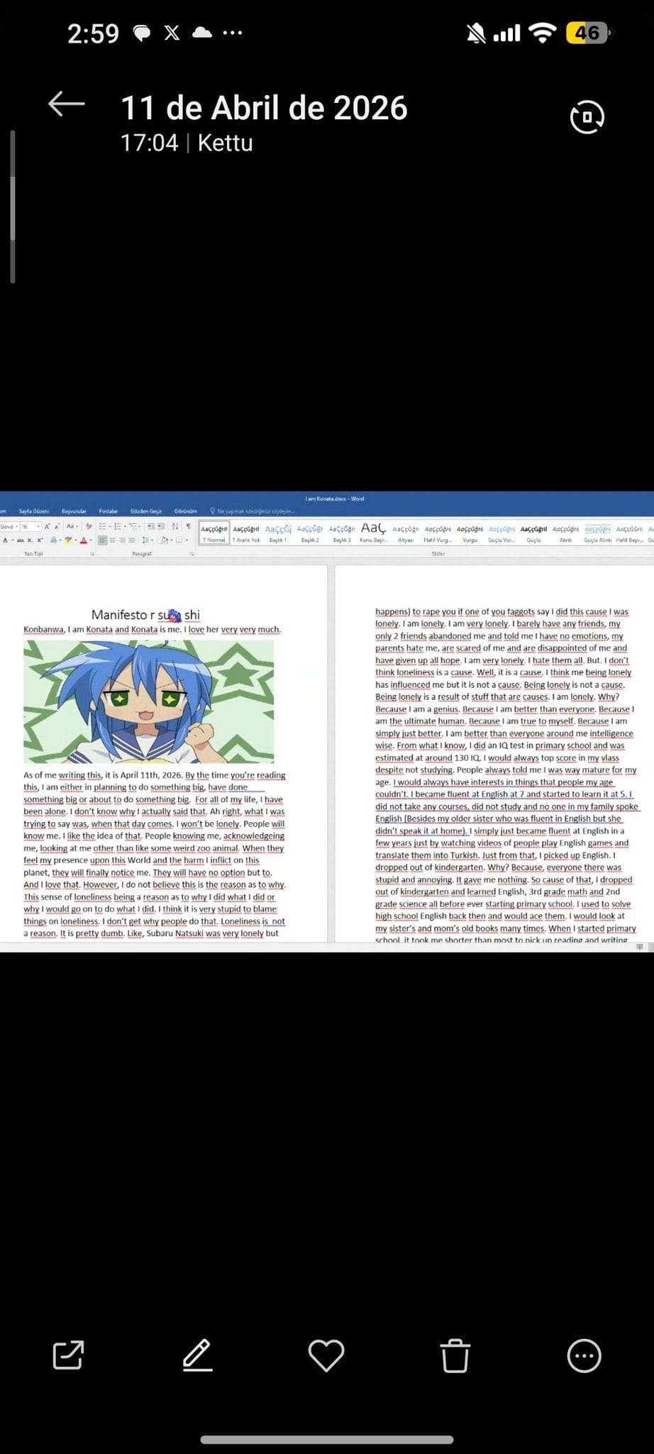 “Bunu yazarken tarih 11 Nisan 2026. Sen bunu okuduğunda ya bir şey planlıyor olacağım, yapmış olacağım ya da yapmak üzere olacağım. Hayatım boyunca hep yalnız kaldım. Nedenini bilmiyorum, aslında çok fazla şeyim vardı. Hep insanlarla kaynaşmaya çalıştım ama yalnız kaldım.”