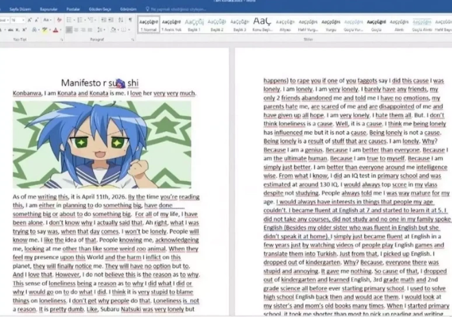 Gazeteci Çetin Aydın’ın aktardığına göre, saldırganın 11 Nisan tarihli notunda kan donduran detaylar dikkat çekti. 14 yaşındaki saldırgan, “Bunu yazarken tarih 11 Nisan 2026. Sen bunu okuduğunda ya bir şey planlıyor olacağım, yapmış olacağım ya da yapmak üzere olacağım. Hayatım boyunca hep yalnız kaldım. Nedenini bilmiyorum, aslında çok fazla şeyim vardı. Hep insanlarla kaynaşmaya çalıştım ama yalnız kaldım.