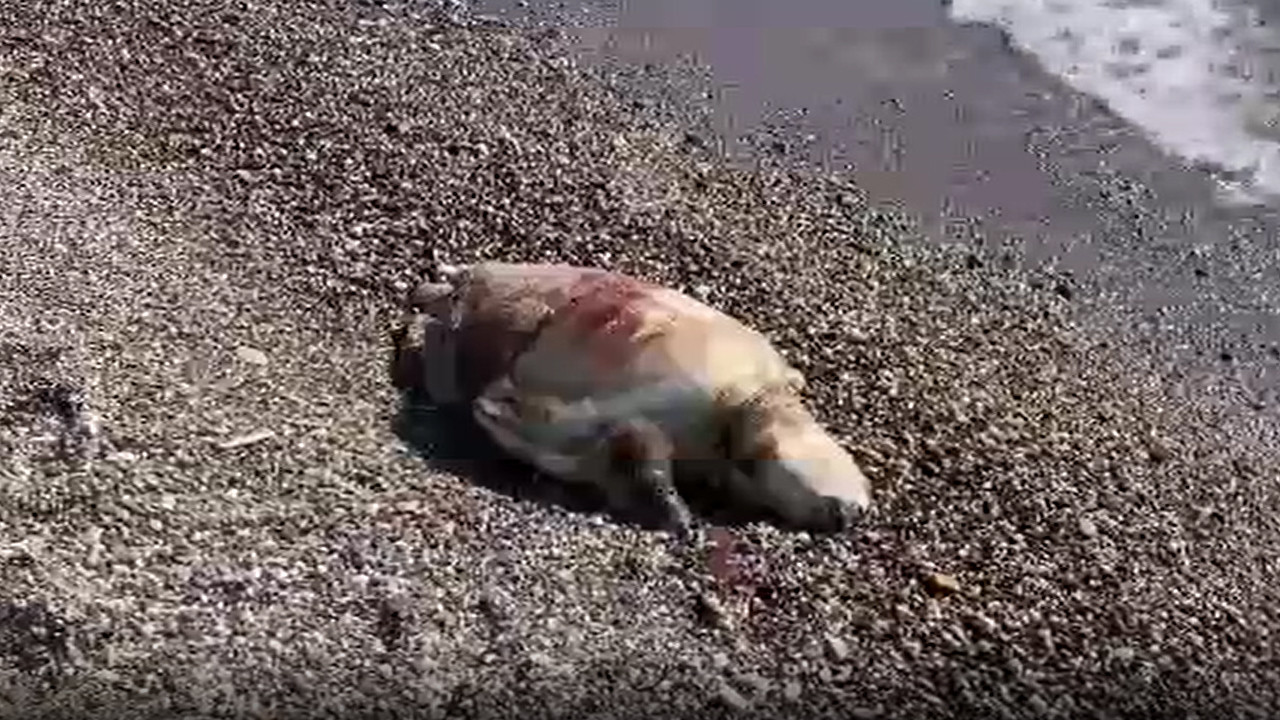 Caretta caretta cinsi deniz kaplumbağası ölüsü Antalya Gazipaşa’daki Selinus Sahili’nde kıyıya vurdu. Yaklaşık 60 santimetre boyunda ve 30 kilo civarındaki deniz kaplumbağasını sahilde gezenler fark etti.