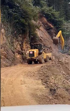 İş makinesiyle kapalı güzergahı açmak için çalışma yürütülürken ikinci bir heyelan oldu. Yamaçtan kopan toprak ve kaya parçalarının üzerine doğru geldiğini fark eden operatör, iş makinesiyle hızla geri manevra yaptı.