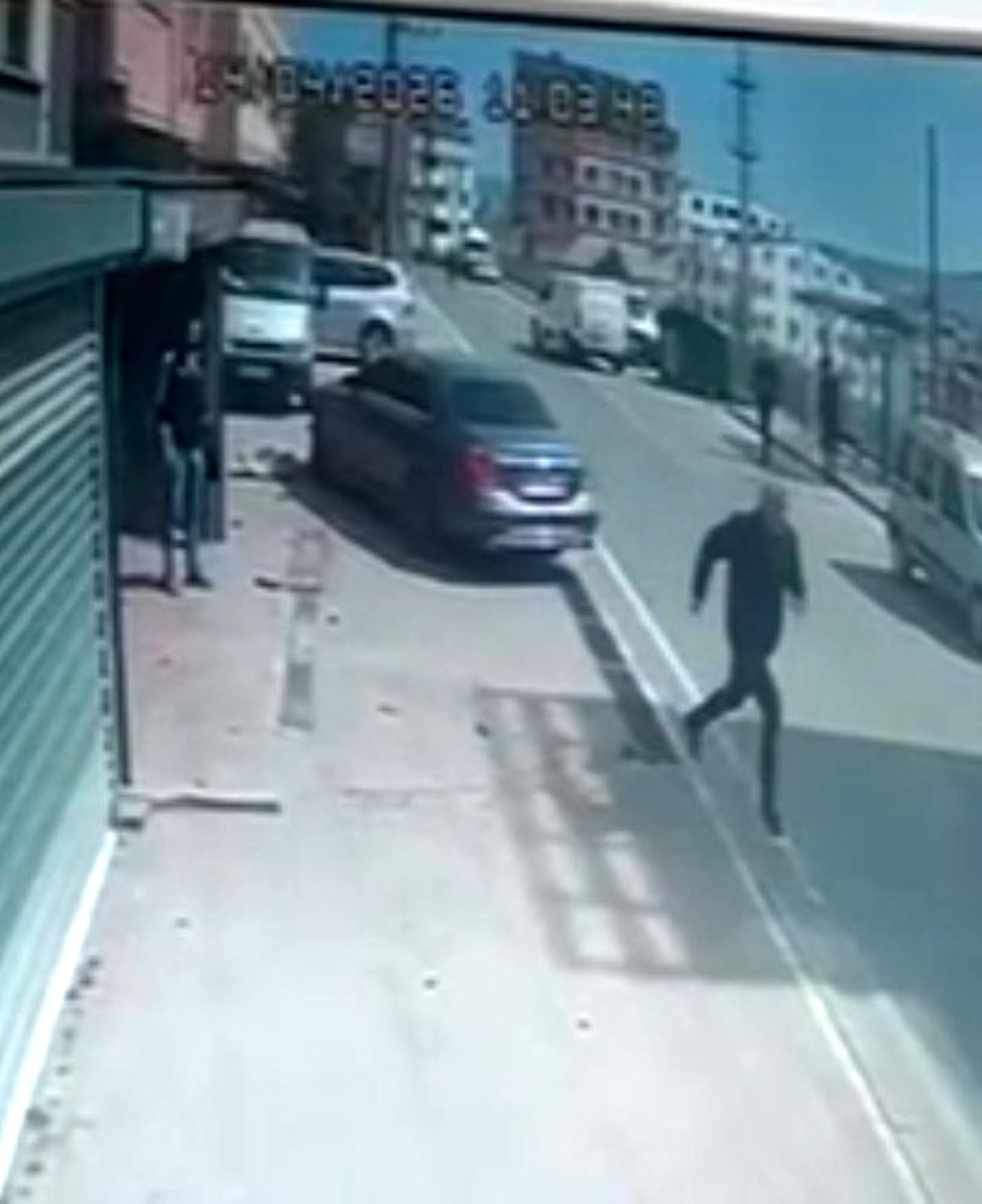 Otomobilin karşı yönden gelen motosiklete çarpması ve otomobil sürücüsünün aracından inerek yaralı motosiklet sürücüsünün üzerine doğru koştuğu anlar güvenlik kameralarına yansıdı.