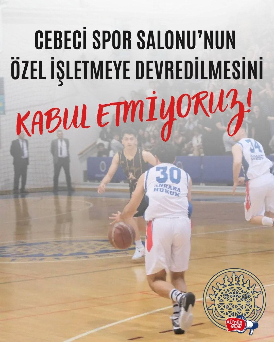 “Cebeci Spor Salonu öğrencilerin ortak alanıdır. Üniversiteler ticarethane, öğrenciler müşteri değildir. Özelleştirme politikalarına ve kampüslerin ticarileşmesine karşı boyun eğmeyeceğiz.”