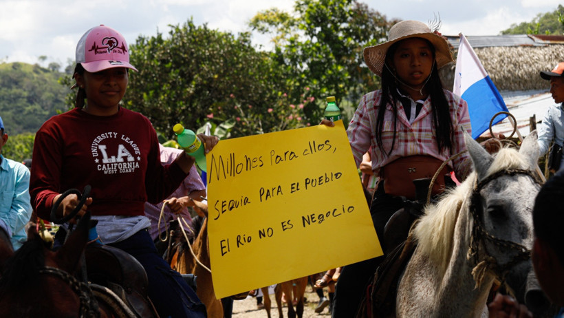 Projede ulusal ve uluslararası yasalara aykırılıklar olduğunu savunan çiftçiler; Panama bayrakları, pankartlar ve tarım ürünleriyle yürüyerek topraklarını terk etmeyeceklerini vurguladı.