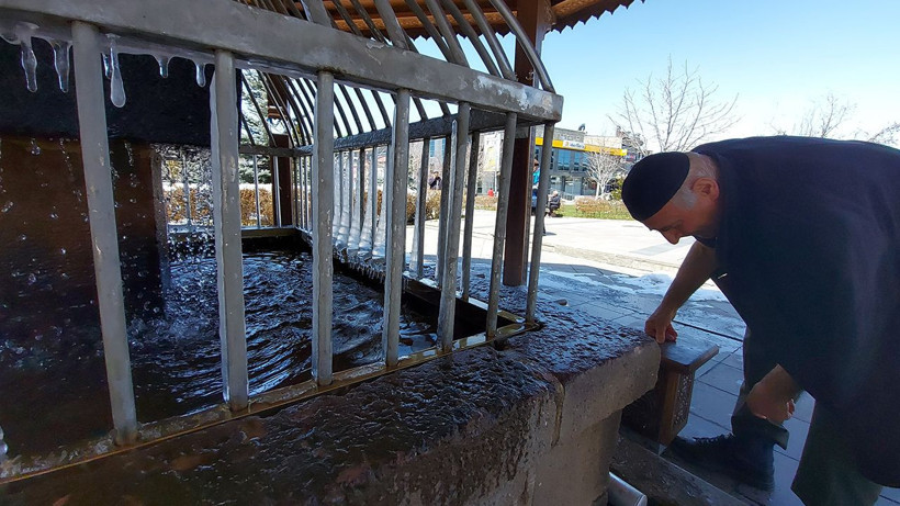Doğa Nisan ayıyla birlikte canlanmaya başlasa da kentin coğrafi yapısı bu ilginç görüntüleri ortaya çıkarıyor. Vatandaşlar banklarda güneşlenirken bir yandan da gece oluşan buzlanmayla mücadele ediliyor.
