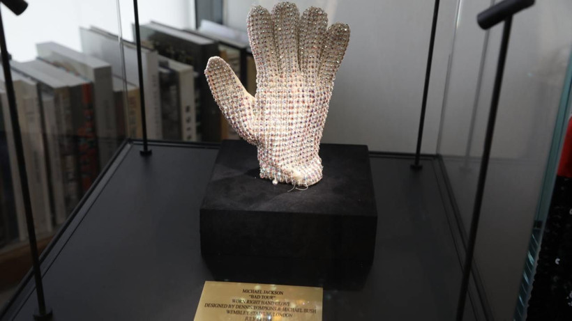 Müzayede evi görevlisi, serginin en gözde parçalarından biri olan Michael Jackson ile özdeşleşmiş parıltılı beyaz eldiveni tanıtıyor. Sanatçının sahne performanslarının vazgeçilmezi olan bu eldiven, koleksiyonun en yüksek değer biçilen parçaları arasında yer alıyor.