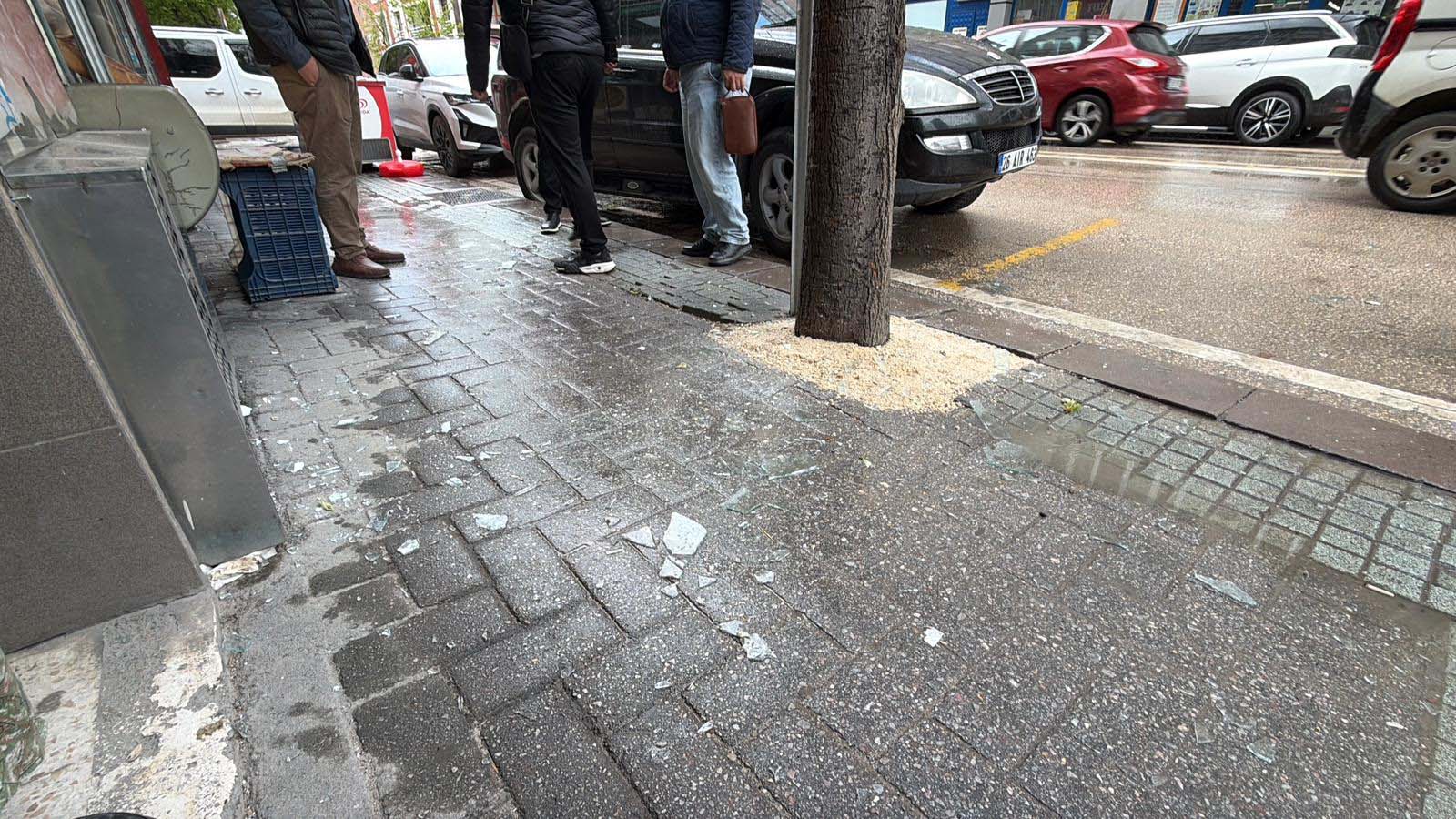 Parçalanan camdan saçılan kırıklar, kaldırımda yürüyen 54 yaşındaki Emre Candemir’in başına isabet etti.