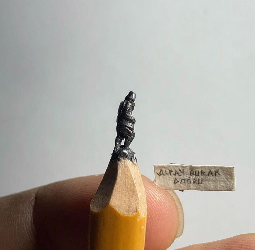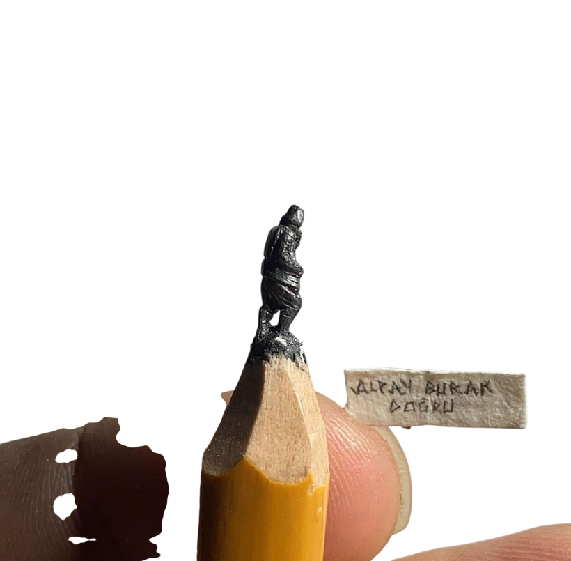 Kurşun kalem ucunda Kocatepe: Atatürk’ün Kocatepe’deki ikonik silüetini kalem ucuna mikro heykel olarak işledi.