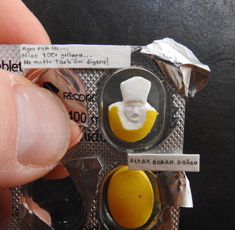 Pirinç tanesinde Atatürk: Kalpaklı Atatürk portresini siyah-beyaz olarak pirinç tanesine sığdırdı.