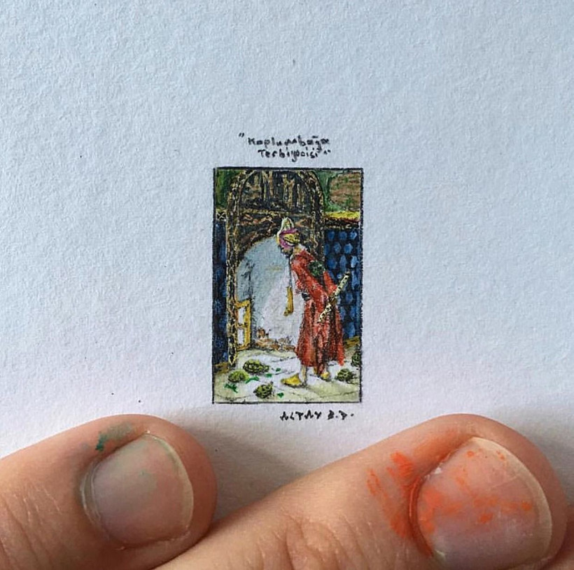 Sosyal medyadan bilindiği kadarıyla, mikro ressamlık üzerine eser üreten Türkiye’deki iki kişiden biri, dünyadaki yaklaşık otuz beş sanatçıdan biridir. Tuval olarak kullandığı materyaller arasında sakal kılı, incir çekirdeği, pirinç tanesi, makarna, madeni para, hap, abeslang (tahta muayene kaşığı) ve poşet çay gibi nesneler yer alıyor.