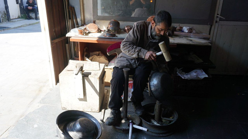 Mutfaklarda teflon, çelik ve plastik kullanımının artmasıyla çırak yetişmeyen mesleğin son temsilcilerinden olan dede, baba ve torun, aynı körüğün başında birlikte çekiç sallamaya devam ediyor.