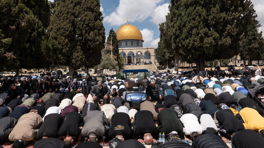 . On binlerce Filistinli, İsrail polisinin getirdiği kısıtlamalara rağmen İran’la savaştan bu yana ibadete kapalı olan Mescid-i Aksa’ya gelerek cuma namazını eda etti.