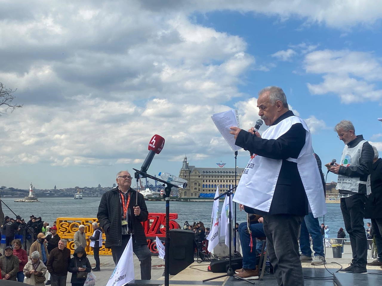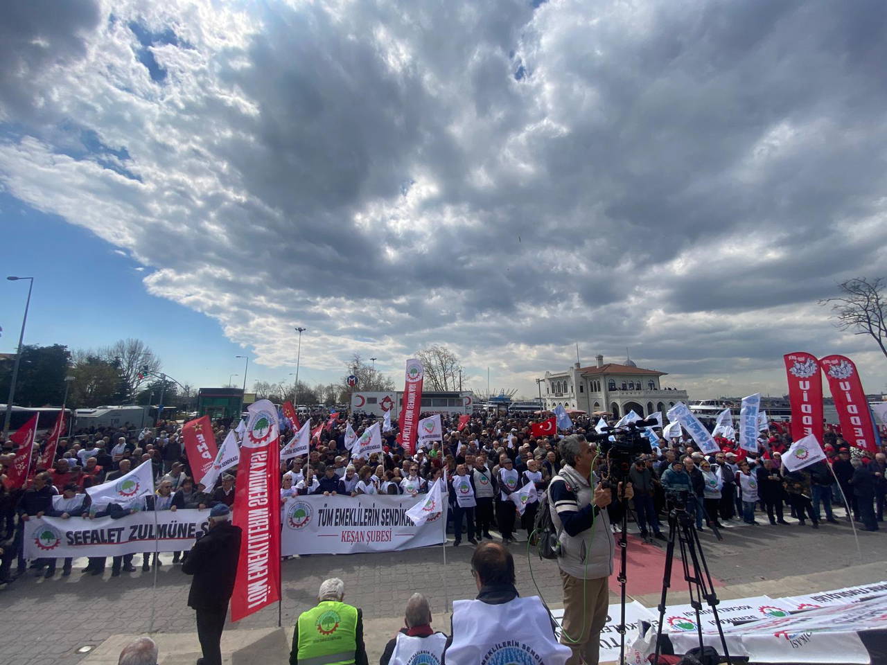 Kadıköy Rıhtım’da bir araya gelen emekliler, geçim sıkıntısına dikkat çekerek iktidara seslendi. Tüm Emekliler Sendikası adına basın açıklamasını Hasan Karagöz okudu. Karagöz, “İnsanca yaşam için demokratik, laik ve sosyal bir hukuk devleti şarttır” diyerek emeklilerin birleşme çağrısını yineledi.
