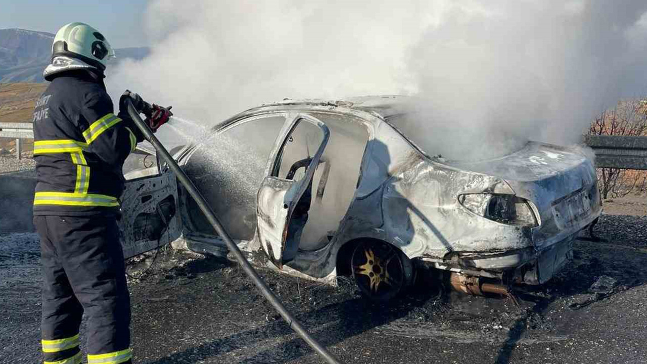 Sürücü Mahmut Gürgen, eşi ve iki çocuğuyla birlikte araçtan çıktı. İtfaiye yangını kortrol altına aldı. Otomobil tamamen yanarak kullanılamaz hale gelirken yangının çıkış nedeni araştırılıyor.