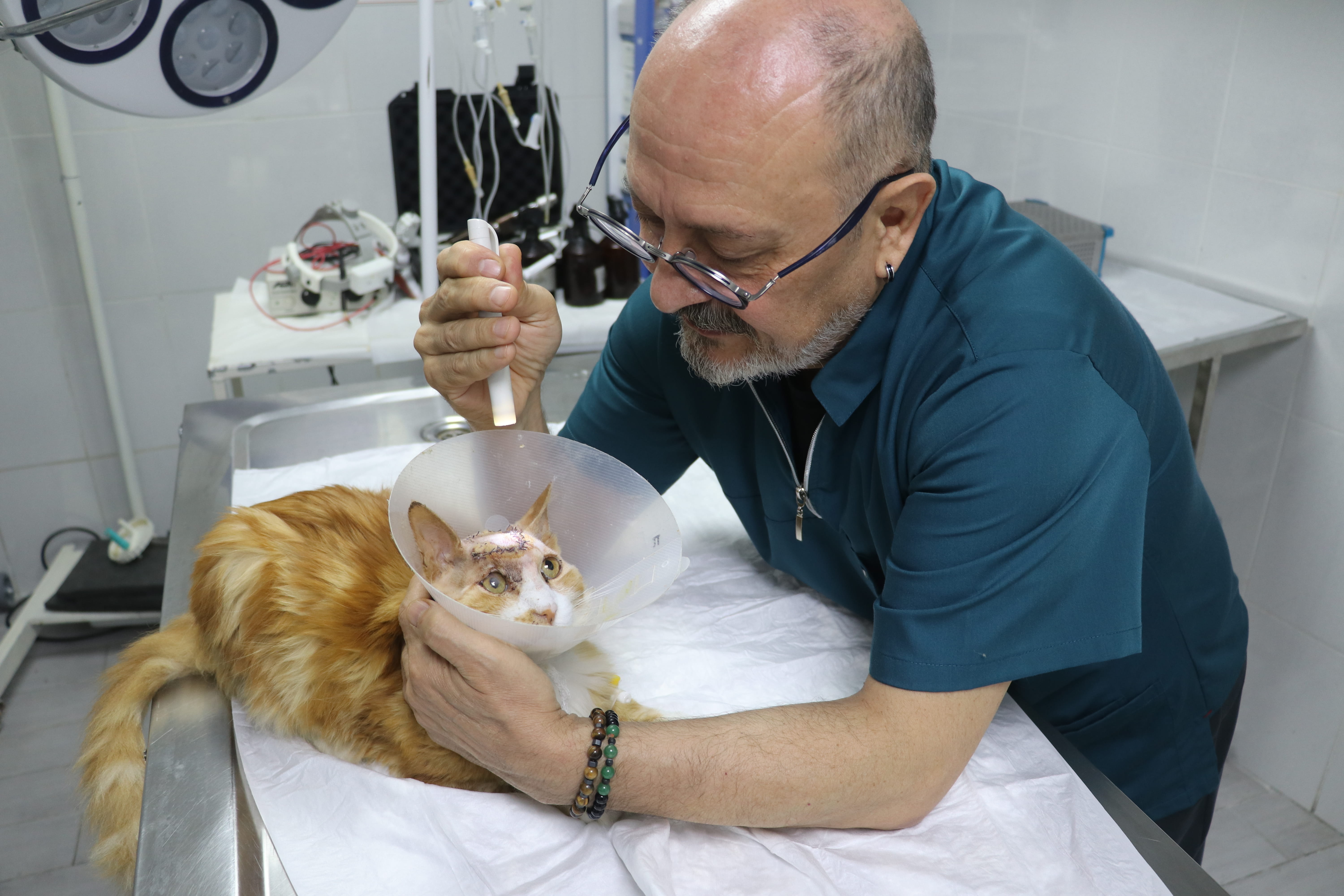 Hızla çalışılan kliniğe götürülen ve bir gözünün enfeksiyon nedeniyle kapandığı belirlenen kedi, veteriner hekim İsmail Serdar Sayar tarafından tedaviye alındı. Yapılan incelemelerde, kafatasındaki deliğin bir çarpma veya travma sonucu oluştuğu ve sinüs boşluğunun açıldığı tespit edildi.