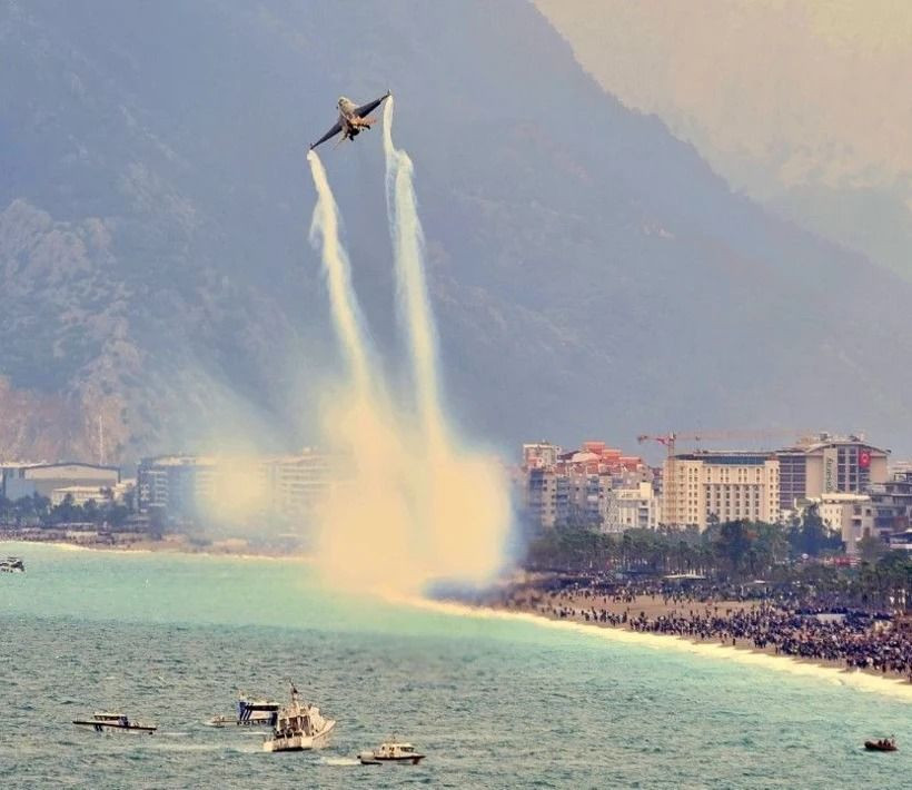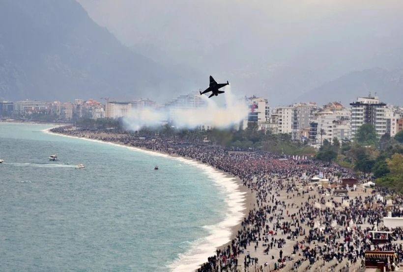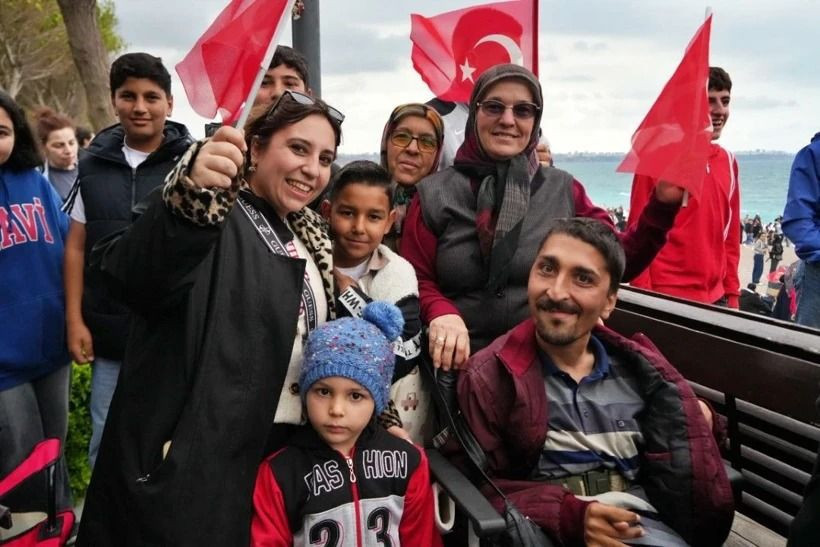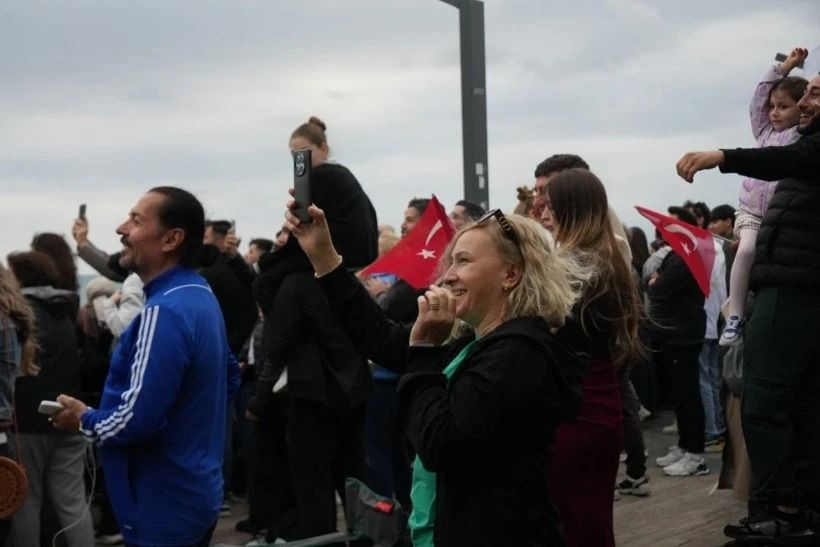 Konyaaltı Sahili ve Olbia Kent Meydanı’ndan izlenen gösteri, alanı dolduran vatandaşlara heyecan dolu anlar yaşattı. Gösteriyi izlemek için saatler öncesinden sahile gelen vatandaşlar, Türk bayrakları ve kamp sandalyeleriyle yerlerini aldı.