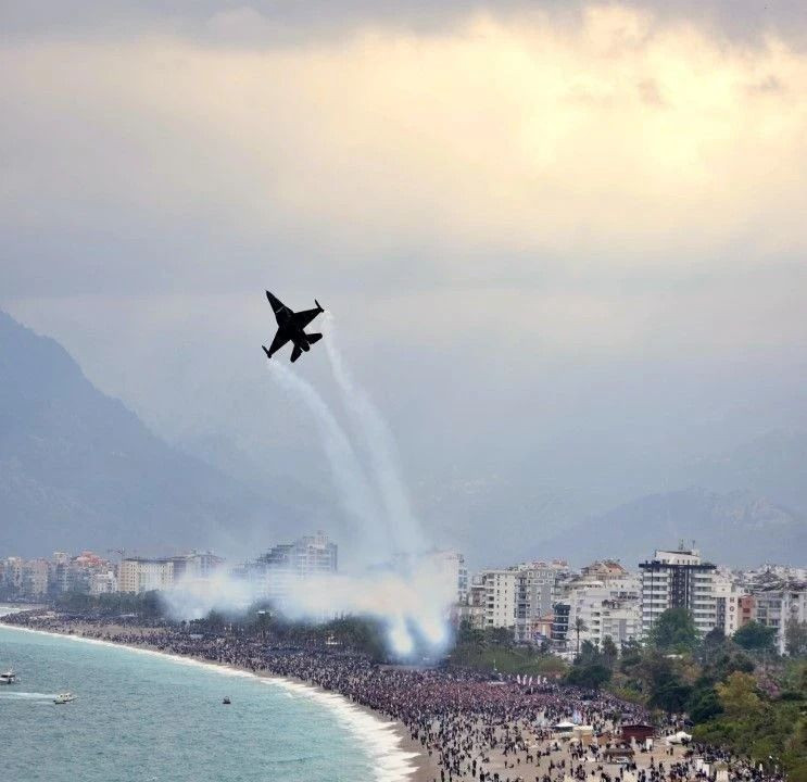 Türkiye Büyük Millet Meclisi’nin açılışının 106’ncı yıl dönümü ve 23 Nisan Ulusal Egemenlik ve Çocuk Bayramı kapsamında düzenlenen etkinliklerde, Türk Hava Kuvvetleri’ne bağlı F-16 Akrobasi Timi SOLOTÜRK, Antalya semalarında gösteri uçuşu gerçekleştirdi.