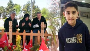 Kahramanmaraş’ta okul saldırısında Kerem Erdem Güngör’ü (11) kaybeden baba Mustafa Güngör, eşiyle 23 Nisan’da oğlunun mezarını ziyaret etti. Gözyaşlarına hakim olamayan Güngör, “Dün akşam arkadaşı geldi. Kız çocuklarını korumuş. Arkadaşı Melek, ‘Bizi korudular ağabey’ diyor” dedi.