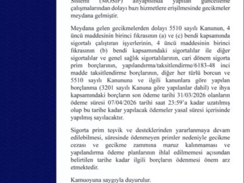 SGK, MOSIP sistemindeki gecikmeler nedeniyle borç ödemelerini 7 Nisan’a kadar uzattı.