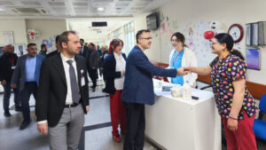 Kırşehir Eğitim ve Araştırma Hastanesi Çocuk Acil Servisi’nde 23 Nisan Ulusal Egemenlik ve Çocuk Bayramı kapsamında düzenlenen programa İl Sağlık Müdürü Doç. Dr. Süleyman Ersoy, Hastane Başhekimi Doç. Dr. Zeynel Abidin Erbesler ve hastane yöneticileri katıldı.