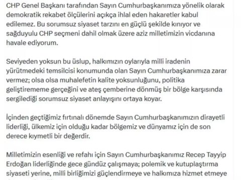 CUMHURBAŞKANI Yardımcısı Cevdet Yılmaz, “CHP Genel Başkanı tarafından Sayın Cumhurbaşkanımıza yönelik olarak demokratik rekabet ölçülerini açıkça ihlal eden hakaretler kabul edilemez” dedi.