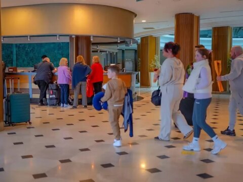 Marmaris’te İngiltere’den gelen turistler çiçeklerle karşılanarak 2026 turizm sezonu açıldı.