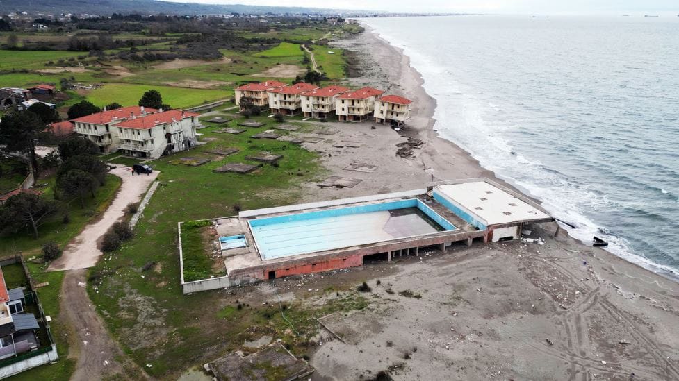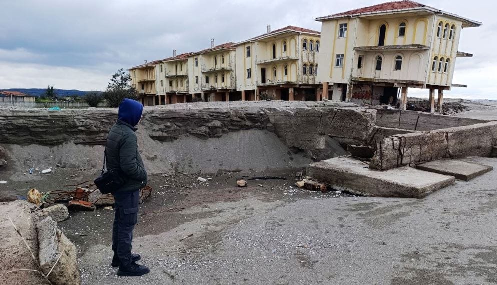 Kıyı erozyonunun tahrip ettiği eski tatil köyü ile ilgili bilgi veren Kır, “Özel bir imarla tatil köyü ruhsatı alınarak 1985 yılında inşaatına başlandı. 1995 yıllarında da inşaatı tamamlandı. Turizme etki edecek şekilde hizmete açılacağı zamanlar, kıyı erozyonu da kendini gösterdi. Bu sahilde deniz en az 100 metre ilerideydi. Bugün ise deniz içeriye girdi ve sıfıra kadar geldi. Buraya bir tedbir alınması da gerekiyordu.” diye konuştu.