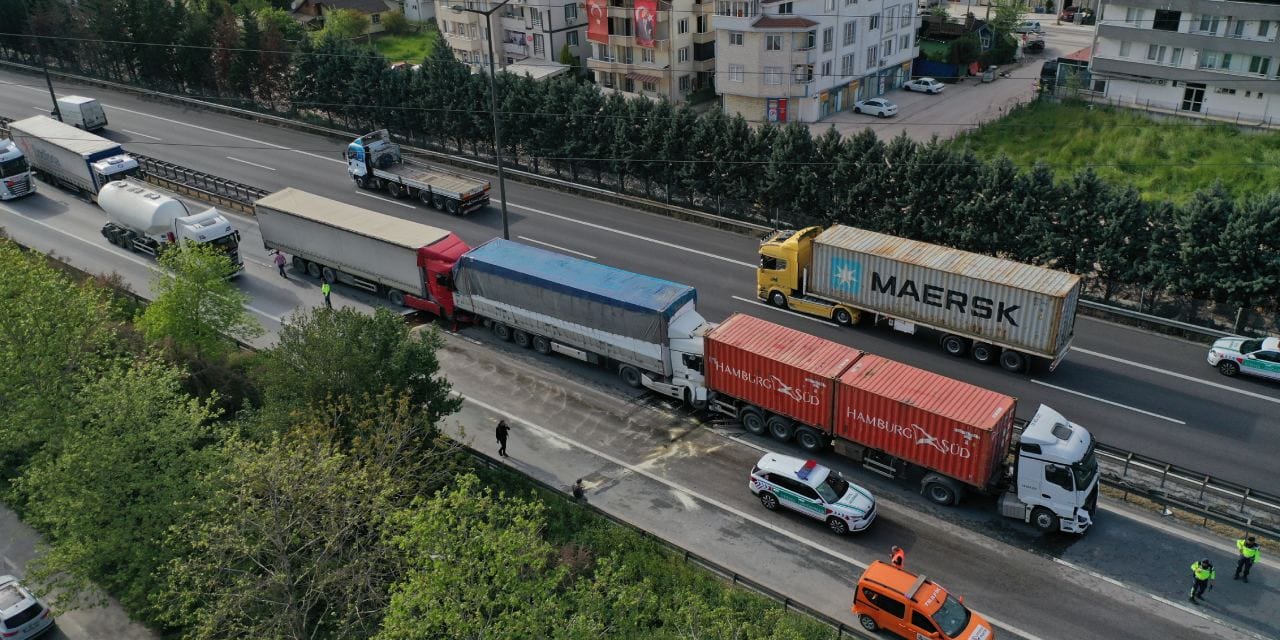 TEM Otoyolu’nda 6 TIR’ın karıştığı zincirleme kaza meydana geldi. Kazada ölen veya yaralanan olmadığı öğrenilirken, kaza nedeniyle otoyolun Ankara yönünde ulaşım aksadı.