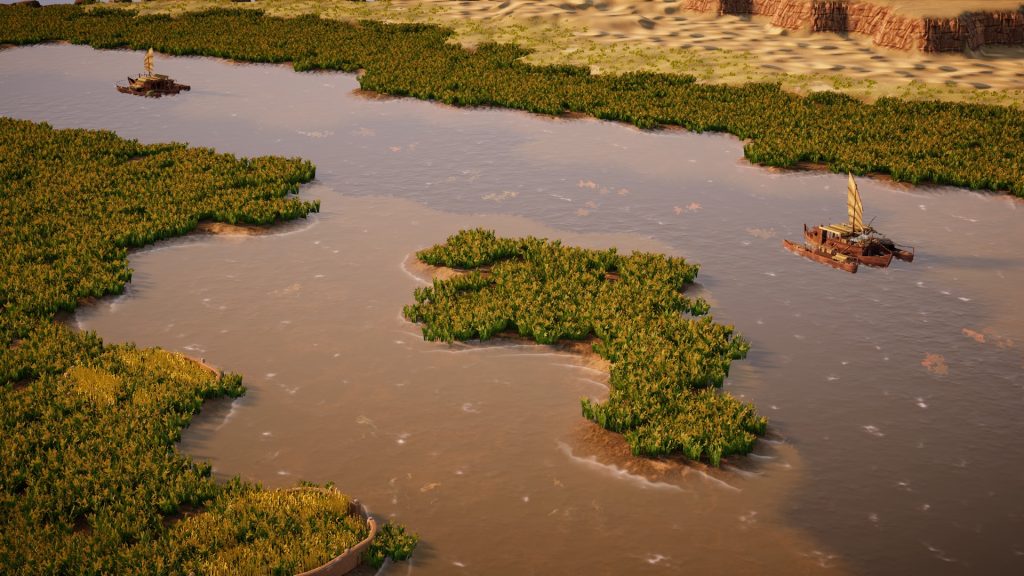 TerraScape Ancient Egypt, oyuncuları çorak kumları verimli topraklara dönüştürmeye davet ediyor. Bu DLC’nin en dikkat çekici özelliği, Nil Nehri’nin mevsimsel taşkınlarını bir oynanış mekaniği olarak sunması. Oyuncular, yerleşimlerini büyütürken nehrin dinamik yapısına uyum sağlamalı ve bu doğal döngüyü kendi avantajlarına kullanmalı. Doğru zamanlama ve stratejik yerleşim ile Nil’in bereketi, küçük bir yerleşimi devasa bir çölde parlayan bir vaha haline getirebiliyor.