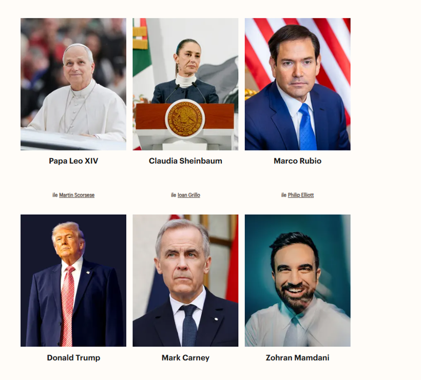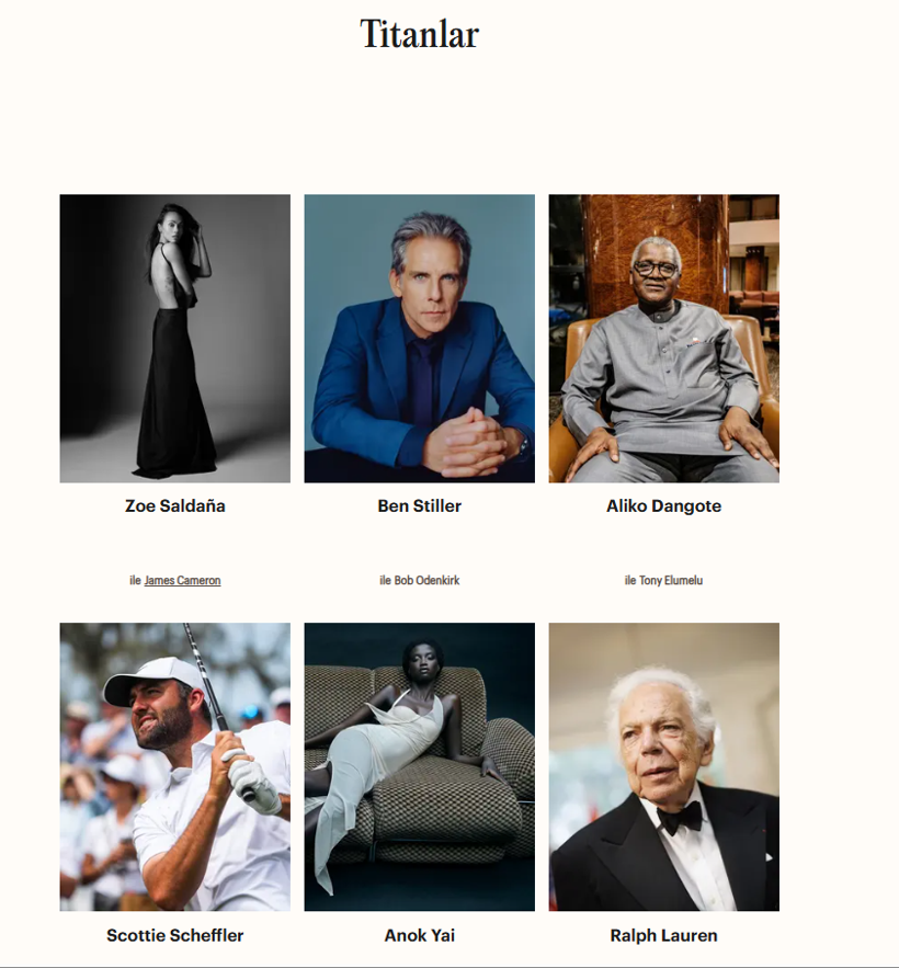 Time dergisi, bu yıl seçtiği dünyanın en etkili 100 ismini “sanatçılar, titanlar, yenilikçiler, ikonlar, liderler ve öncüler” olmak üzere 6 kategoride açıkladı.