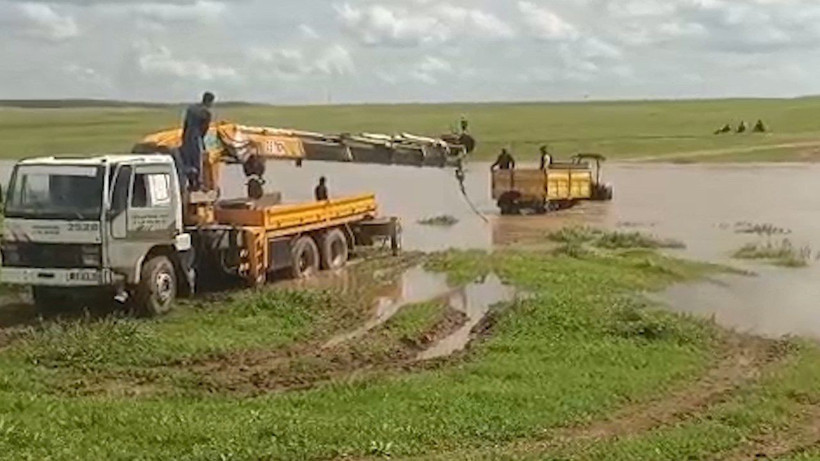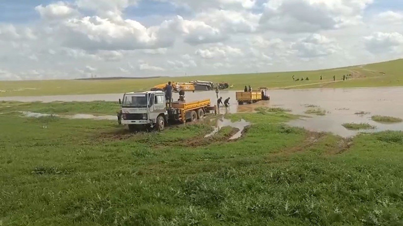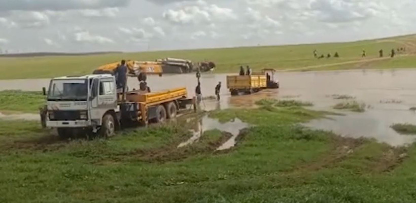 İş makinesine bağlanan halatla traktöre ulaşıldı. Mahsur kalan 3 kişi, daha sonra güvenli şekilde tahliye edildi.